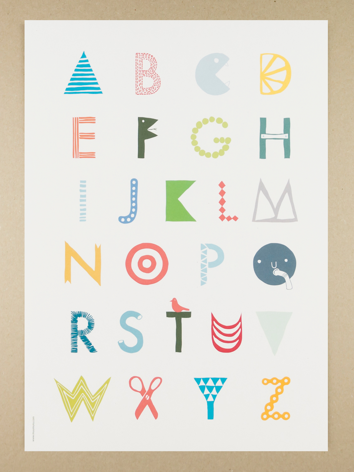 Plakat Doodle Abc fińskiej marki MUUMURU będzie eleganckim wykończeniem każdego wnętrza. Idealny do oprawienia w ramę z passe-partout. Plakat drukowany jest na wysokiej jakości papierze makulaturowym o gramaturze 200 g.